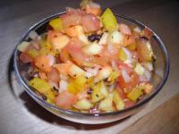 Салатик с папайей - Название не придумала! 1 папайя кубиками, 2 помидорки б/кожи кубиками, 1сл. болгарский перчик кубиками, 1 очень маленькую луковицу очень мелкопорезанную, чуть базилика , 1ст.л. сахара - все перемешать. Соус: 2ст.л. измельченных семян папайи, 2 ст.л. кр. винного уксуса, 3 ст.л. оливкового масла, 1/2 ч.л. зернистой горчицы - перемешать и полить салатик. Муж сказал "Оригинальный какой вкус".